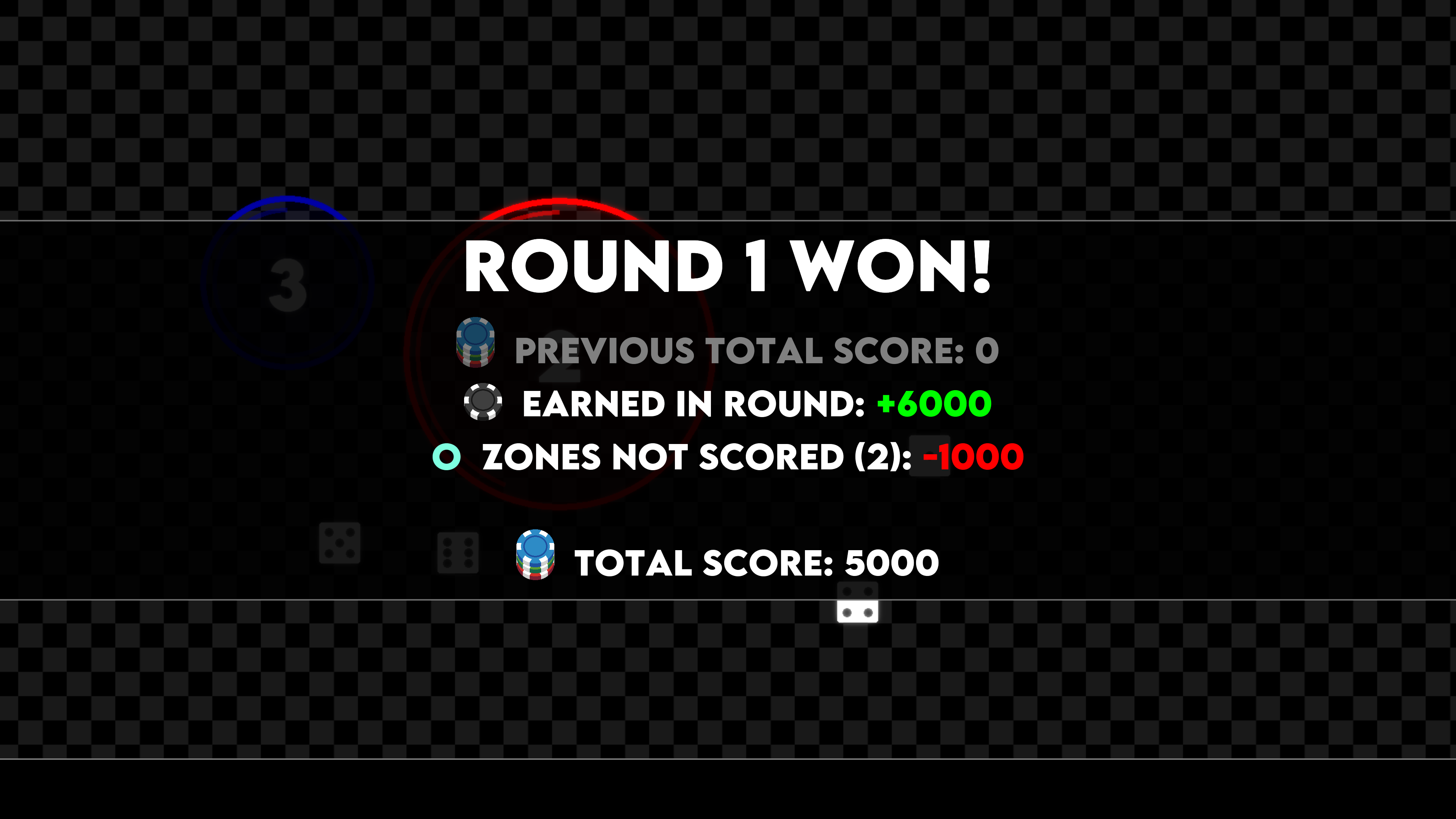 - Prepare for the next round! Future rounds will have bigger values in the zones, so you will need more dice and/or bigger dice.